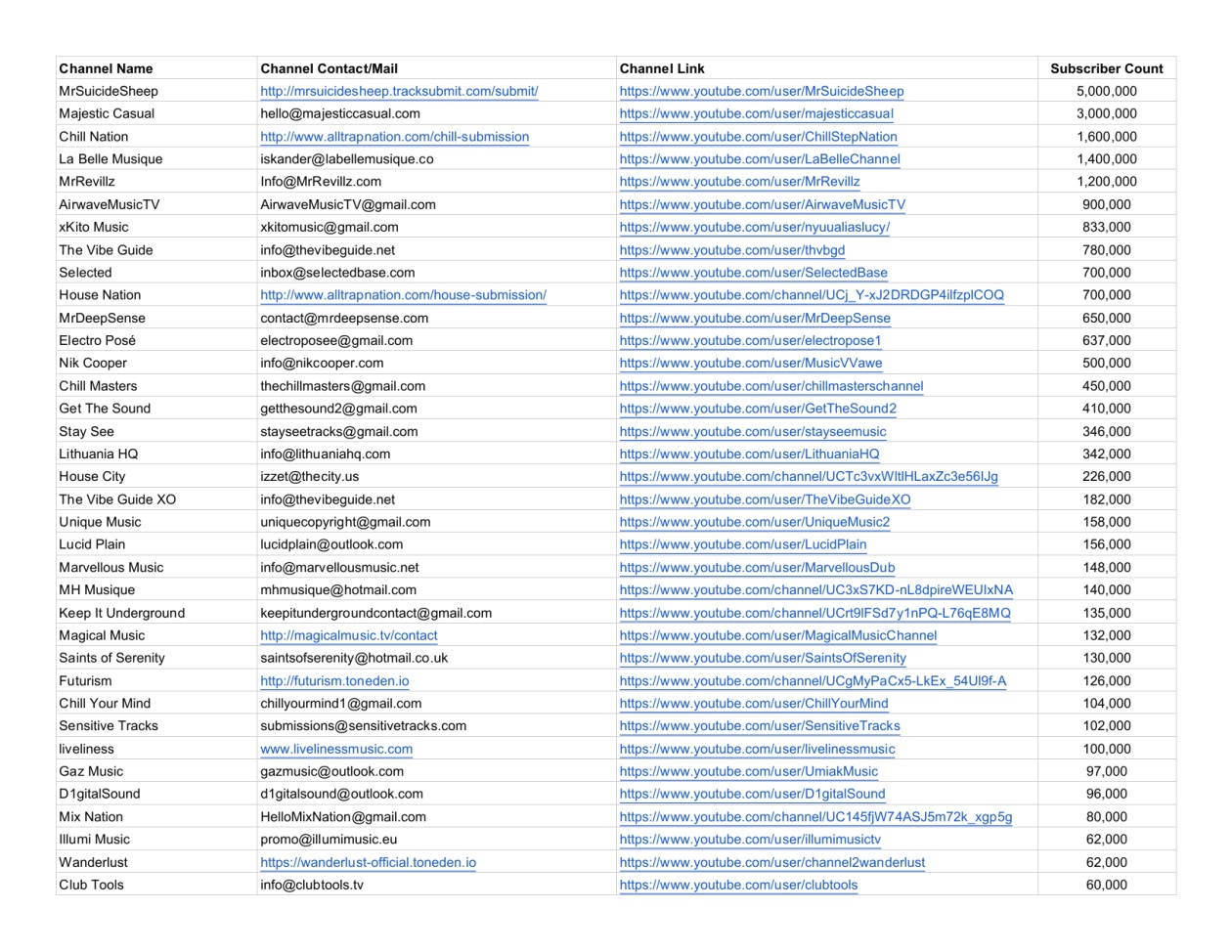 I have a contact list of over 5000 + ''TOP'' Djs and Music contacts with their active emails