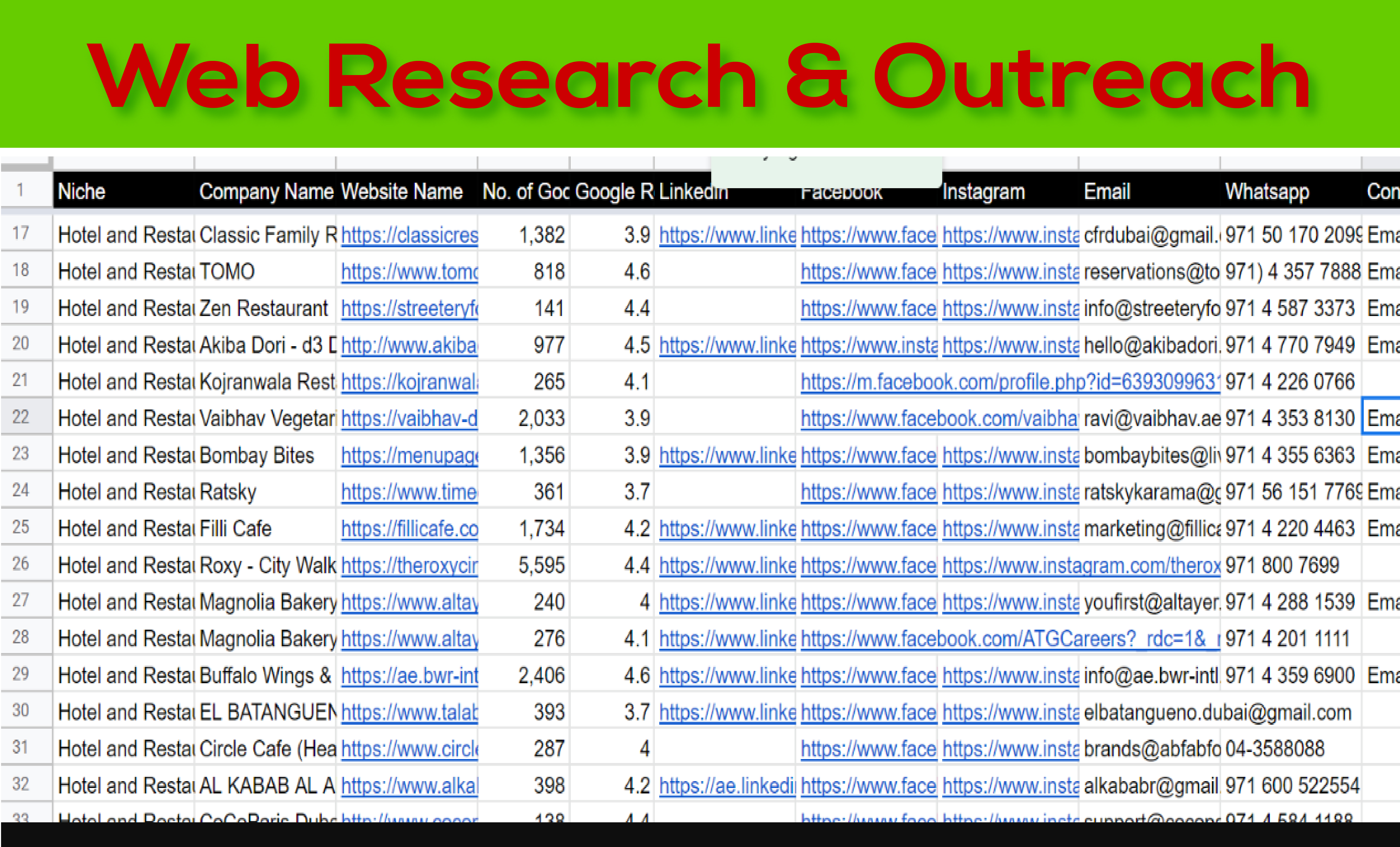 I can build a B2B Lead List on various Industries or niches and gather information. I'll provide the following details in Google Sheet/Excel/.csv format:-
