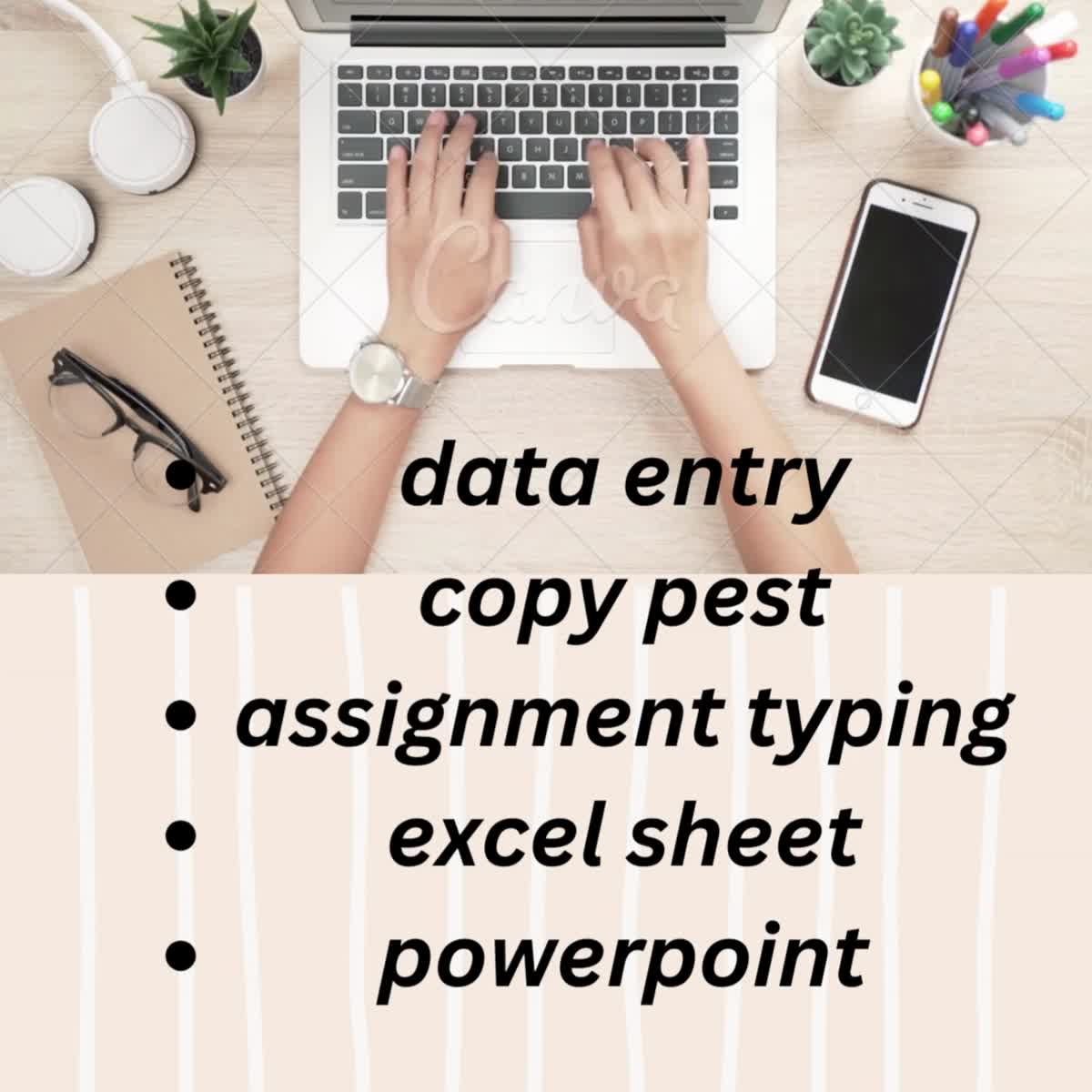 It's great to hear you're offering professional Excel data entry, copy-paste, assignment, and typing services. Excel is a powerful tool for managing and analyzing data, and many businesses and individuals require assistance with these tasks. If you have any questions or need advice on performing these tasks more efficiently or effectively, feel free to ask, and I'd be happy to provide guidance or tips. Additionally, if you need assistance with anything specific related to Excel or data entry, please provide more details, and I'll do my best to assist you.