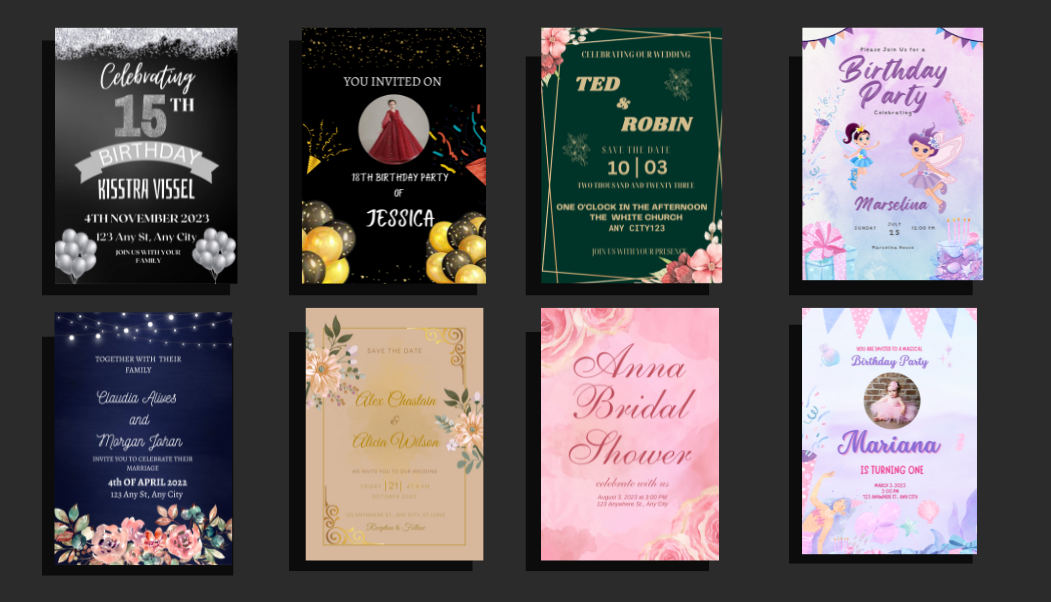 I will create beautiful wedding cards, birthday cards or any event invitation card