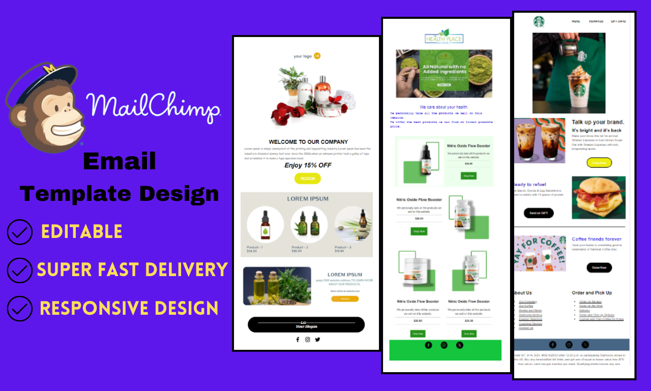 Hello! Welcome to my MailChimp Email Template Design Gig!Are you seeking a stunning and responsive email template for your MailChimp campaigns? You are in the right place to get the best service. With my email marketing and design expertise, I will create eye-catching and professional email templates tailored to your brand and campaign goals.Here's what you can expect from my service:High-Quality GraphicsAttractive and Professional DesignResponsive LayoutModern and Clean Mailchimp TemplateAffordable PriceHigh-quality work with the fastest deliveryCustom GraphicsWhy Choose Me?Clean, Professional & Eye Catching TemplateExpertise and ExperienceTimely DeliveryUnlimited RevisionProvide Best SupportAll Device-Friendly TemplateWhether you need a one-time mai template design or ongoing support for your email marketing campaigns, I'm here to help you succeed. Let's work together to create email templates that drive results and leave a lasting impression on your subscribers.NOTE: If you have any questions or special requirements, feel free to contact me. Your satisfaction is my priority.RegardsIsrat