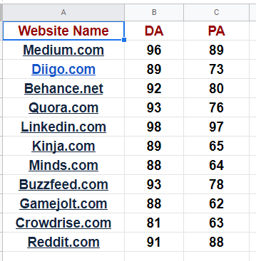 Given Bellow Websites' Metrics: