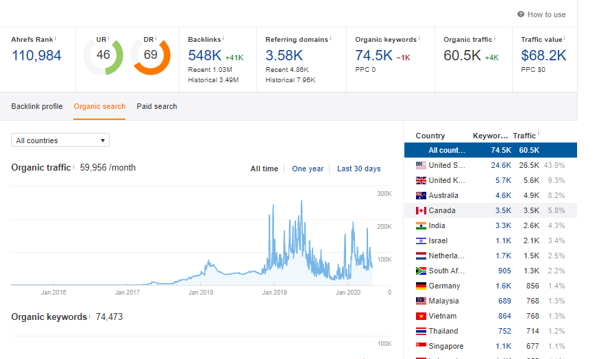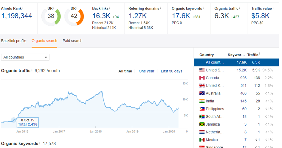 *** Real sites with organic traffic (1000+)