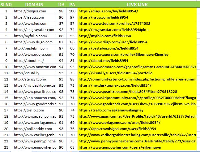 Domain Authorities (DA) ranking from 70 to 100. These links are really effective for Page #1 rankings and Top 3 Positions and all are Google Compliant. All Links 100% Google Safe, Permanent & Manually Create.