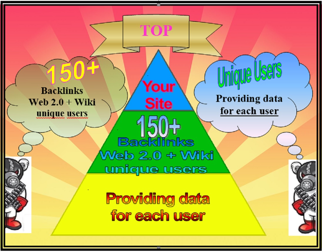 In this new amazing project on Seoclerk, I will give you 150+ backlinks from Web 2.0 + Wiki unique users (profiles). For each order will do created only unique users. The domains on which your backlinks will be created have high rates - DA 13-35 / PA 30-50!
