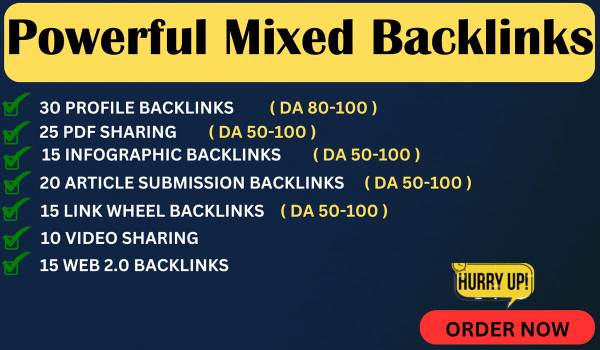 130 high-DA profiles, pdf, infographic, web 2.0, link wheel, video, article SEO backlinks