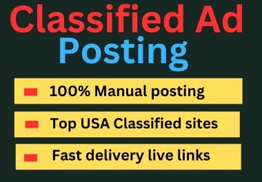 i will create 30 seo classified ads on top classified ad posting websites
