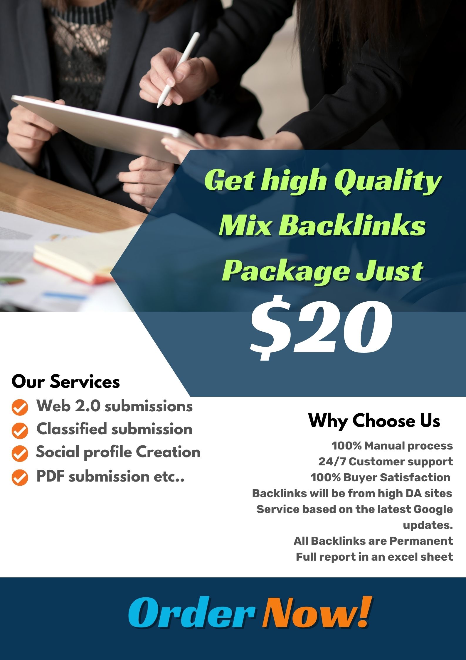 You can contact me and count me on for creating other types of backlinks for you too, such as Business Listings, Web 2.0, Link Building and guest posting, Blog Comments, Article Submission Sites, Press Releases, Classified Ads Posting, Infographic Sharing, Video Sharing Backlinks, Question & Answer Backlinks from Quora and More. Most importantly, my rates are very reasonable.
