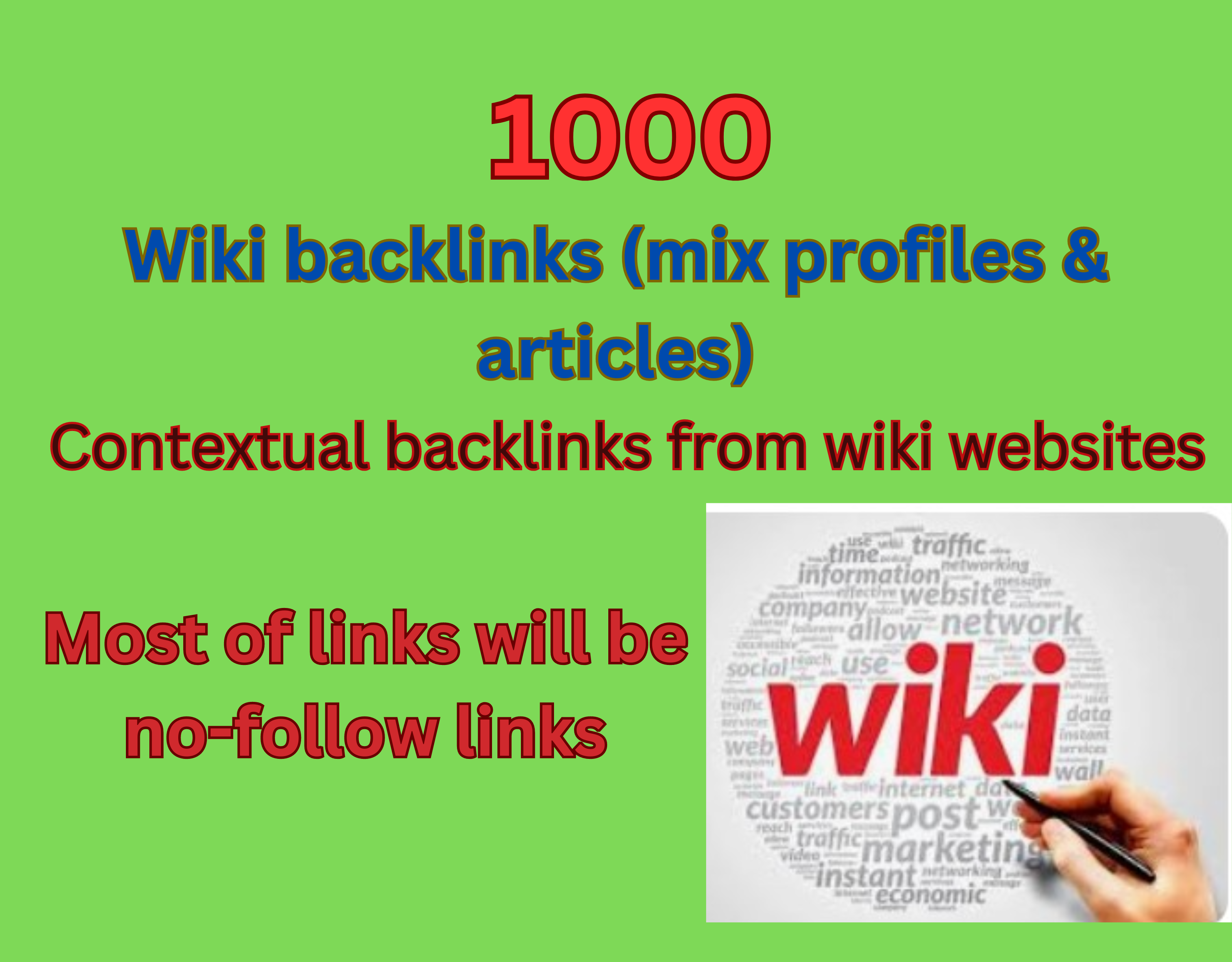 Rank Higher on Google 1000 Contextual backlinks from wiki websites Feature of the service