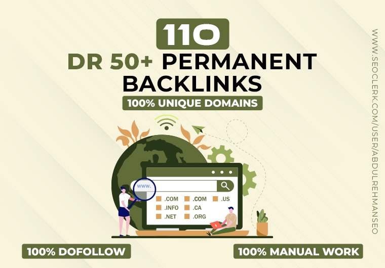 110 Unique Domain DR 50+ Permanent Backlinks for $35
