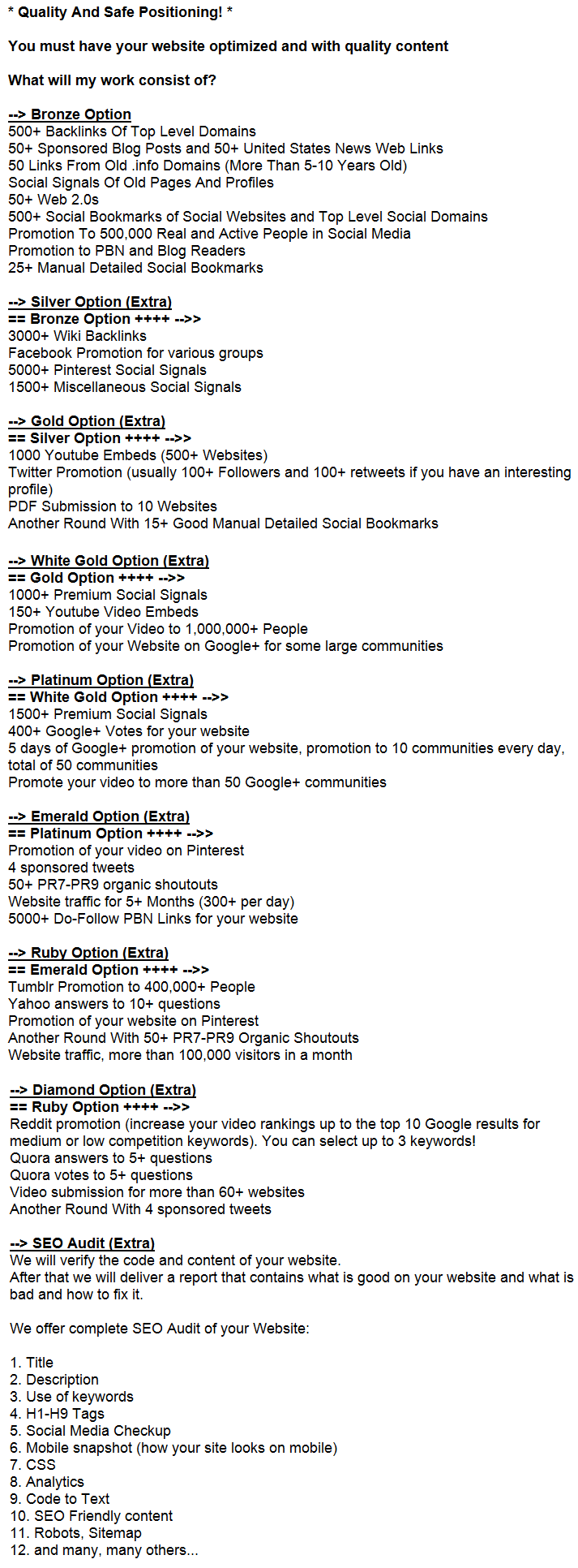 Extras For My Service >Increase Your Rankings< - Original, Premium Or Master