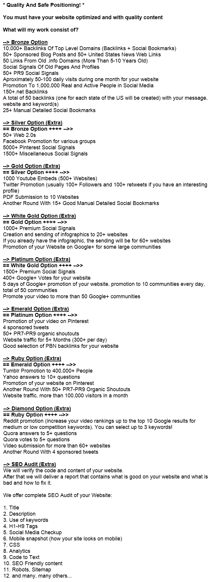 Extras For My Service >Increase Your Rankings< - Original, Premium Or Master