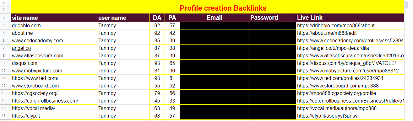 I will provide HQ 50 do-follow profile creation backlinks on high DA PA sites