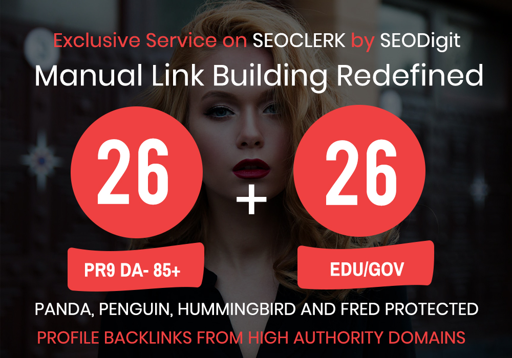 My gig here exclusively on SEOClerks is to create you 26 PR9 + 26 .EDU/.GOV manual backlinks to your website from authority domains.