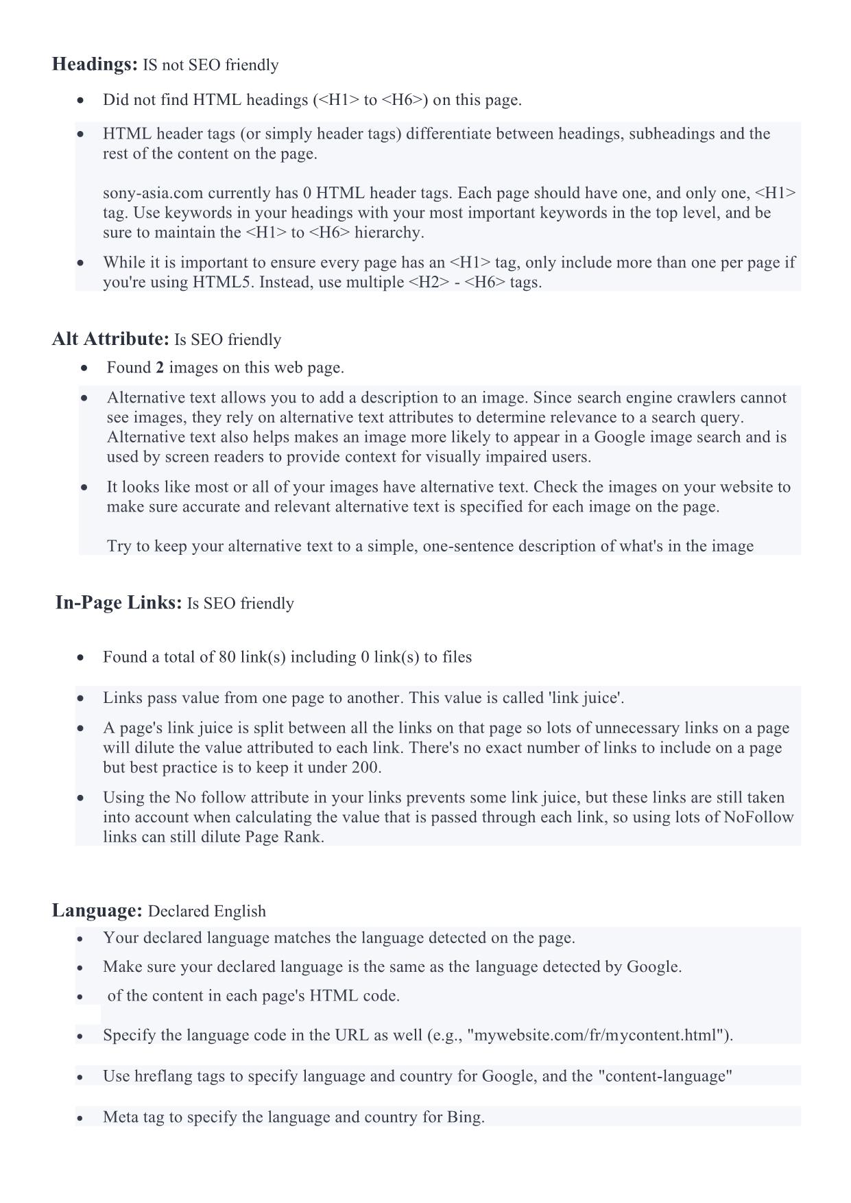 - Google preview, Headings