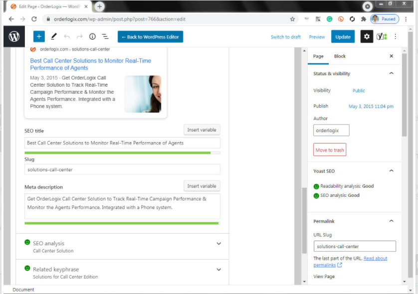 Yoast SEO turns from red to green