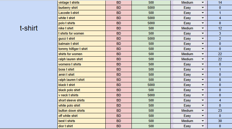 - Arranged according to Search Intent (Commercial, Informational, etc)