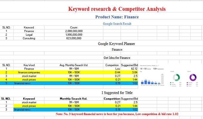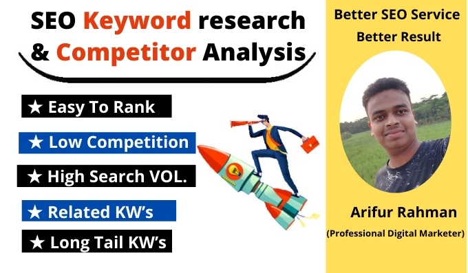 Find the best keywords to target for your business You will get 50 Profitable Keywords + 10 High Recommended Keywords + 2Competitors Top Keywords + Keyword Difficulty + 1Website Audit+2In Deep Competitor Analysis Research