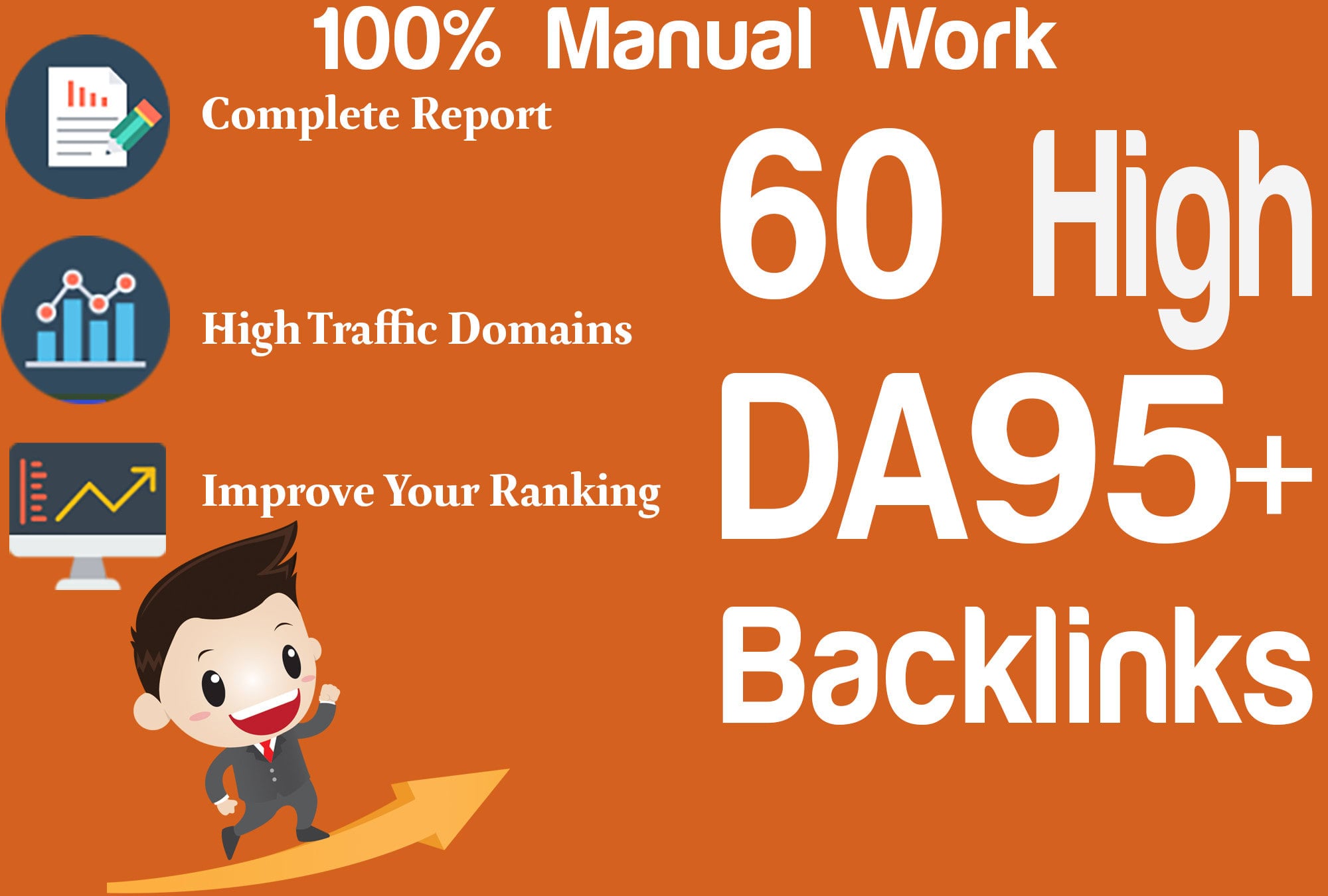 I will create quality Backlinks on 60 different high authority websites. This will help your site to rise in the search engines, which obviously means more exposure to your site and more business.