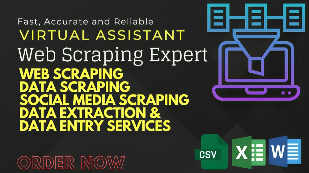 ??? Welcome to Your Productivity Hub! ????Are you seeking a reliable Virtual Assistant skilled in Web Scraping, Data Scraping, and Data Entry to elevate your business to new heights? Look no further!✨ Why Choose Me????? Virtual Assistance: Experience unparalleled support as I efficiently manage tasks, schedules, and communication, leaving you with more time for strategic decisions.????️ Web Scraping: Harness the power of data! I specialize in extracting valuable information from websites, providing you with actionable insights for informed decision-making.???? Data Scraping: Transform raw data into meaningful patterns and trends. I excel in organizing and analyzing data, ensuring you make data-driven decisions with confidence.???? Data Entry: Let me handle the tedious tasks! I ensure accurate and timely entry of information, maintaining the integrity of your databases.✅ What Sets Me Apart?⚡ Proven Results: Witness the impact of my expertise with tangible results and improved operational efficiency.????️ Reliability: Count on me for consistent, high-quality service, meeting deadlines with precision.???? Collaborative Approach: I work closely with clients, understanding their unique needs to deliver customized solutions.???? Optimized for Success:Harness the power of my SEO expertise to enhance your online visibility. I am committed to ensuring your profile ranks on the first page, driving more traffic and opportunities to your virtual doorstep.