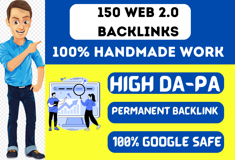 Welcome to my Manually Create Handmade Web 2.0 Backlinks Gig! I will create 150 High-Quality contextual web 2.0 links that Help your website Rank. My handmade web 2.0 backlinks generator will help you improve your website’s ranking and visibility in search engines like Google, Yahoo, and Bing.