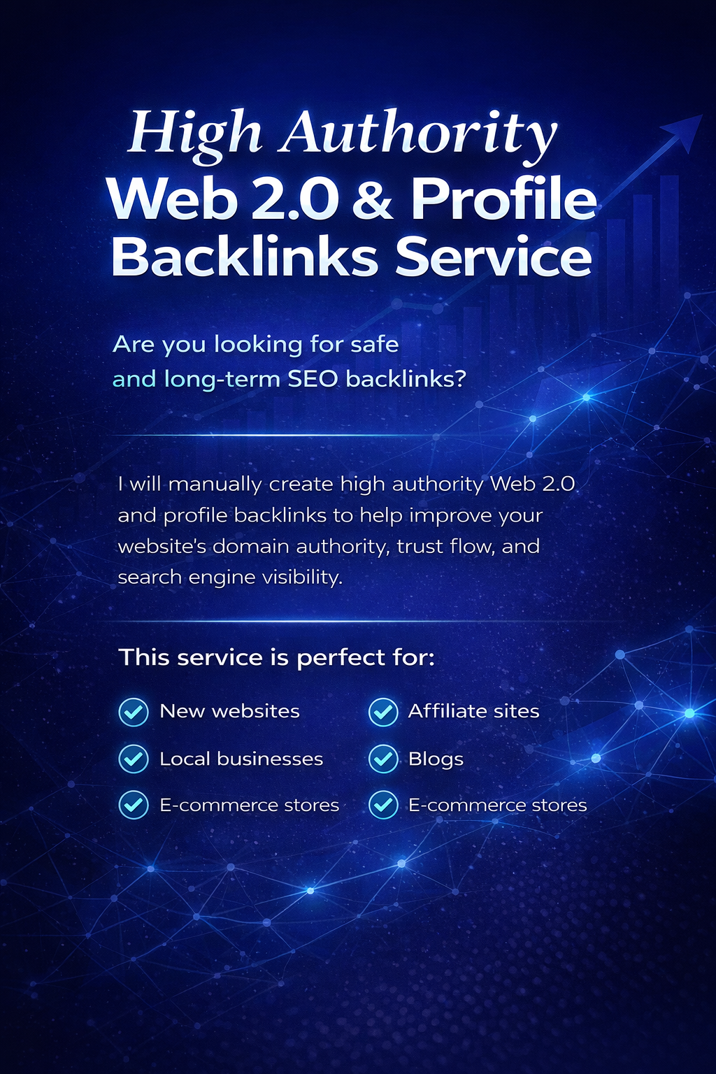 I will manually create high authority Web 2.0 and profile backlinks to help improve your website’s domain authority, trust flow, and search engine visibility.