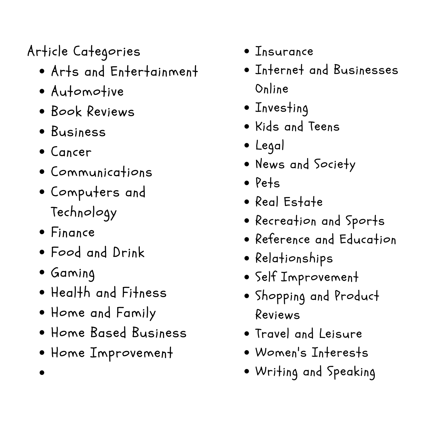 Article writing services, various article types, take your pick.