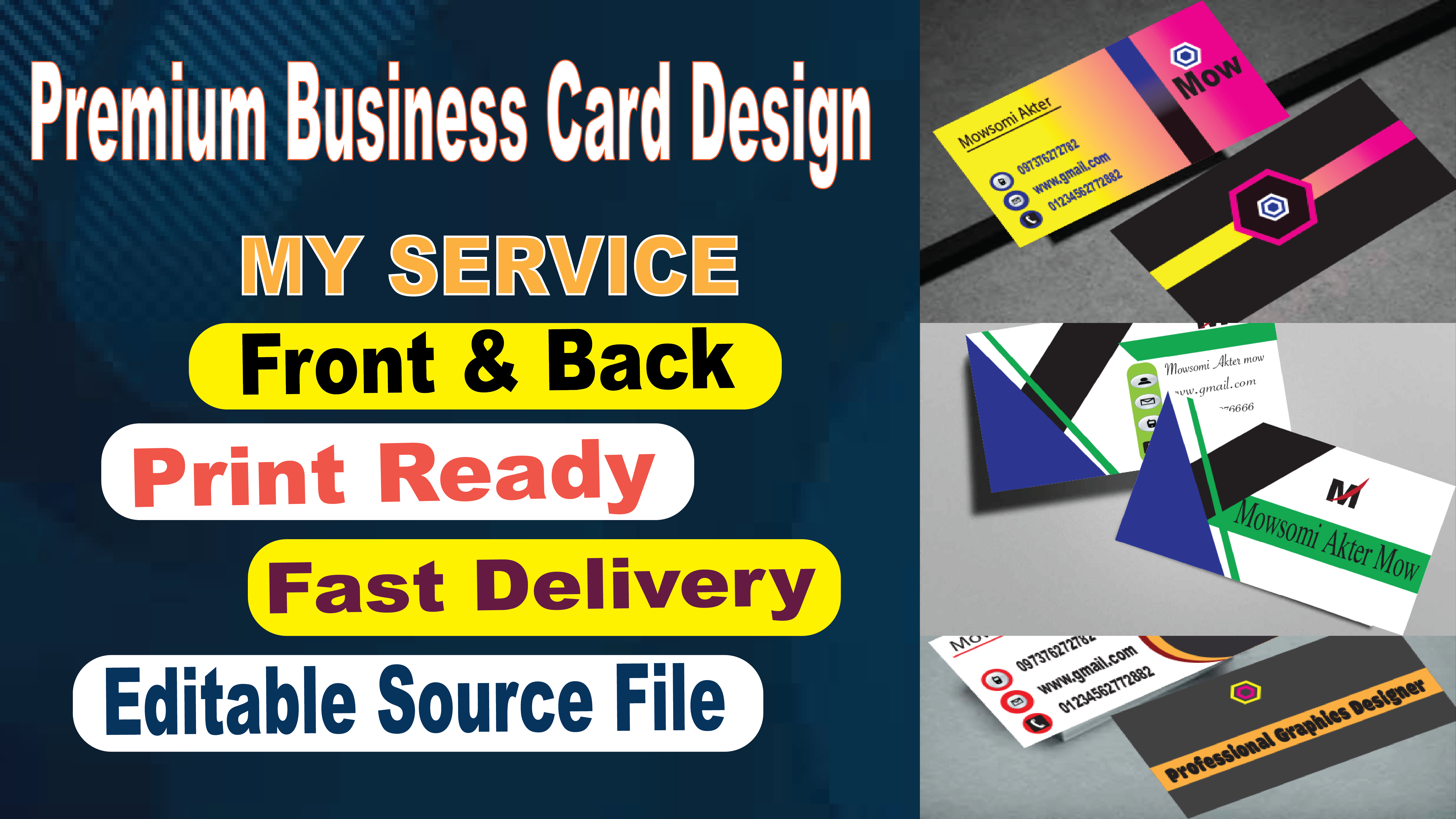 I will design a premium and professional business/visiting card for your brand.You’ll get: Double-sided design Print-ready file (CMYK, 300 DPI) Editable source file (AI/PSD) Fast delivery