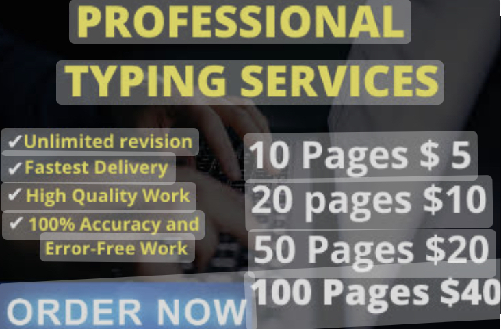 As a highly skilled typist with years of experience, I am confident in my ability to provide fast and accurate typing services. I understand the importance of efficiency and professionalism, and always strive to deliver exceptional results in a timely manner. My attention to detail and commitment to excellence set me apart, and I am dedicated to providing my clients with high-quality work that exceeds their expectations. From data entry to transcription and everything in between, I am your go-to resource for all your typing needs. Let me take the hassle out of typing so that you can focus on the things that matter most. Trust me to get the job done right the first time, every time.