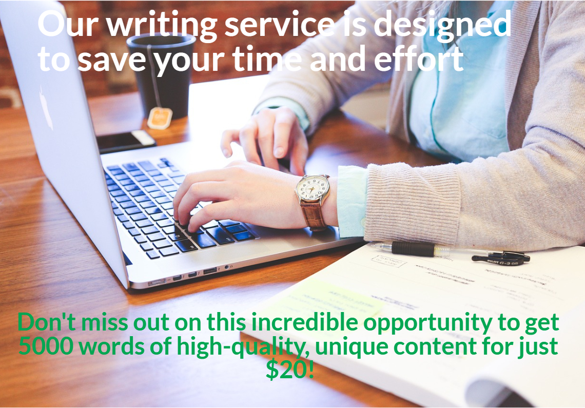 Description: Do you need high-quality and unique articles for your website or blog? Look no further! Our professional writing service offers a special deal - 5000 words of captivating and well-researched content for an incredibly affordable price of just $20!