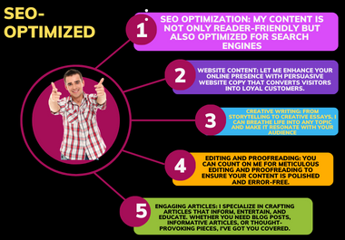 My expertise extends to SEO, allowing me to seamlessly add keyword-rich articles to your request.