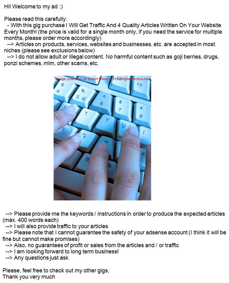 Traffic And 4 Quality Articles Written On Your Website Every Month for $97