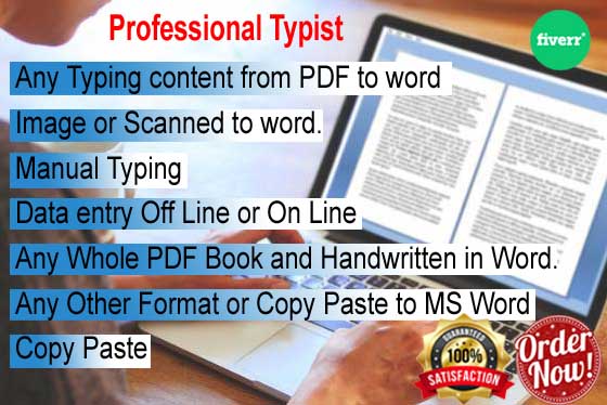 I Can type 130 Words Per Minute Perfectly Without Any Mistake. I Have More Than 12+ Years Of Experience In This Job. I can type from handwritten and printed text. I can same font, margins, layout and keep the exact same text on the page if required. I can provide you with a Final copy and a tracked changes copy showing all the changes I have made to the original.