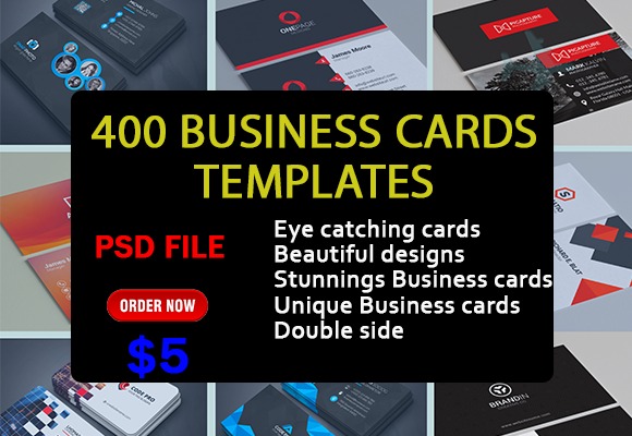 I will send you 400 + creative business card Photoshop templates, You can use them in your design to attract more customers. All files are in PSD format (Photoshop)