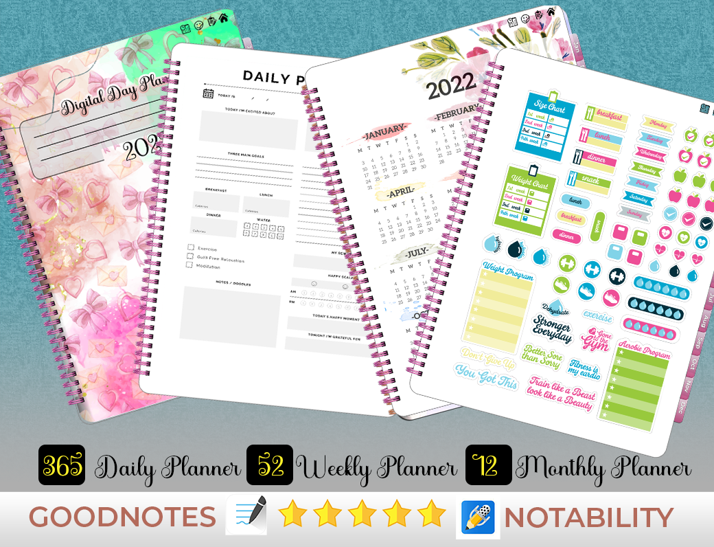 I will Design Your Custom Goodnotes Digital Planner Templates 2022, Daily Planner, Weekly Planner, Monthly Planner, Journaling & To-Do List, I may also help you convert your Journals to Digital Planner with hyperlinks and Stickers, I Will add Beautiful Digital 2022 Calendar to your Digital Planner Templates.
