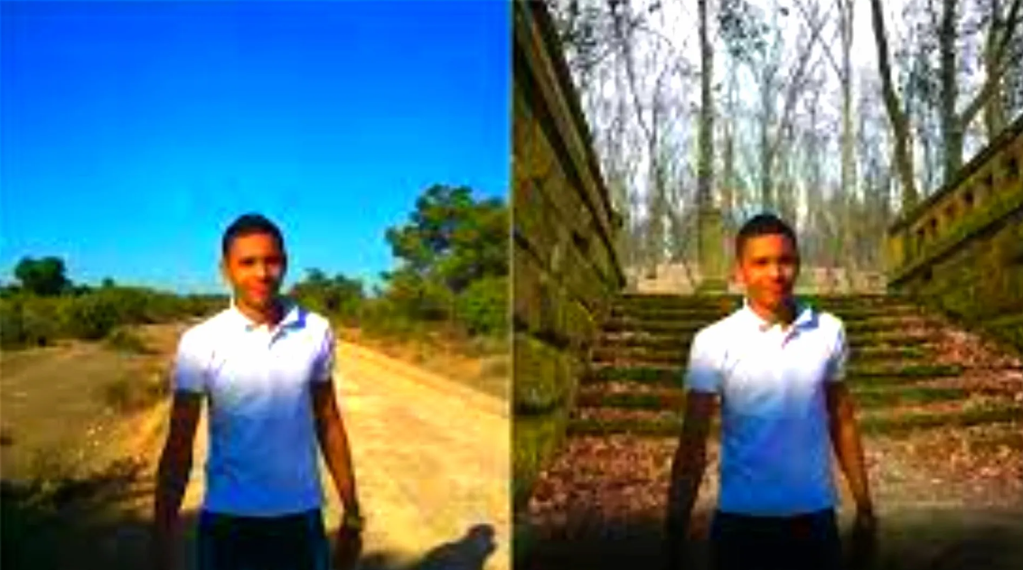 - Change the background of your photo to the background of the photo you want