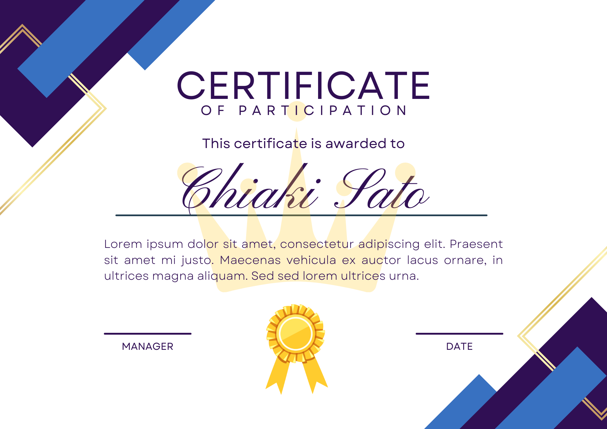 Award certificate
