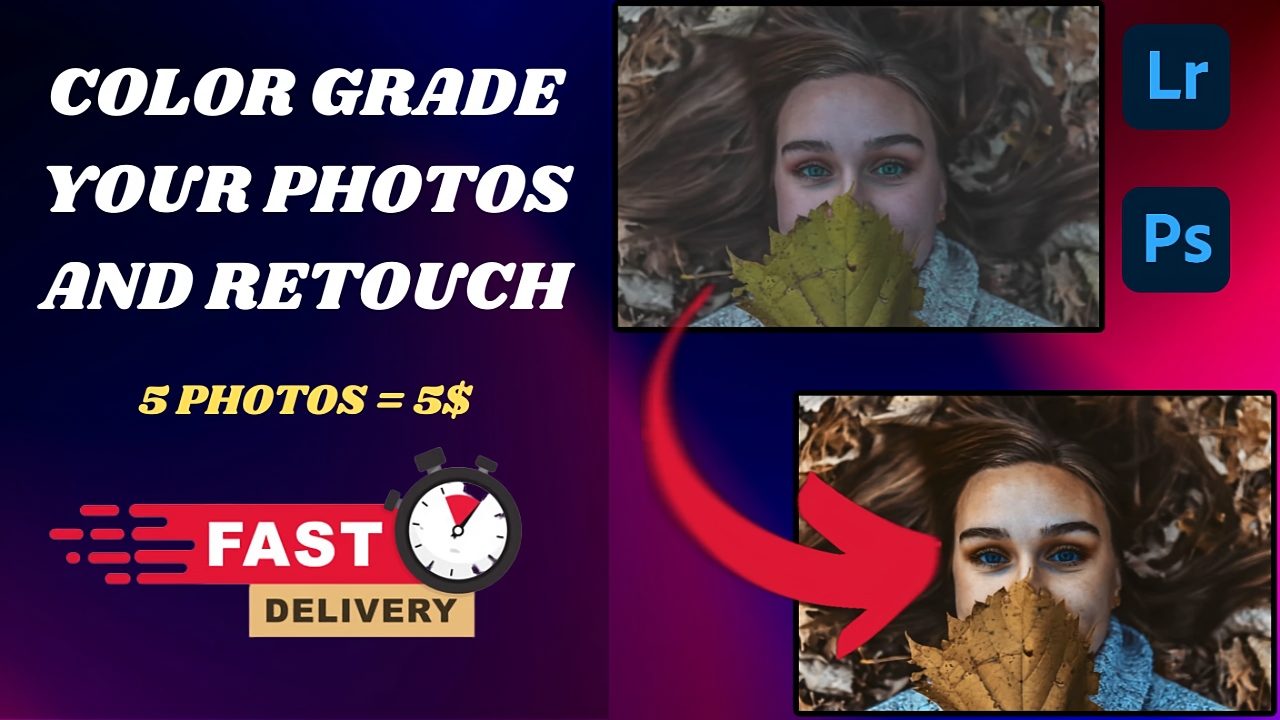 I will color grade 5 photos, colorize and retouch your photos for $5