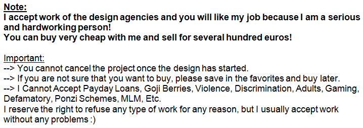Attention: The owner of this service has not logged into SEOClerks for more than 30 days. It is highly recommend that you contact them before ordering this service. Last Login: 2605 days ago