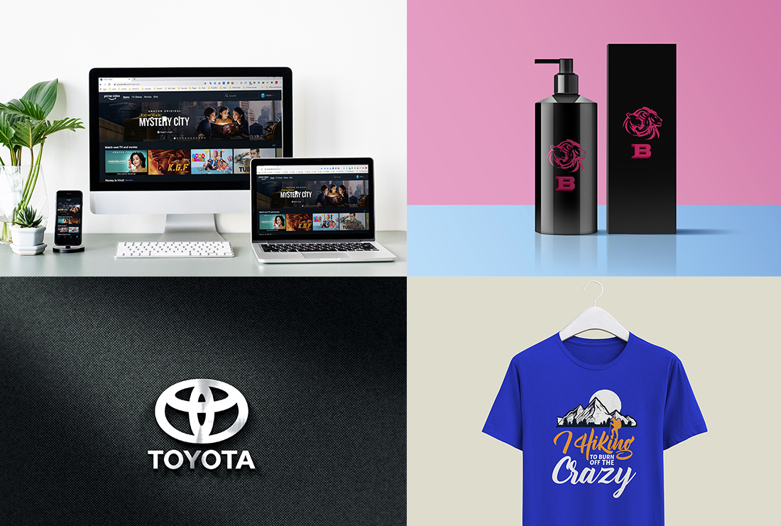 I will create realistic mock-ups of logo, T-shirt, Website & any others 5 mockups