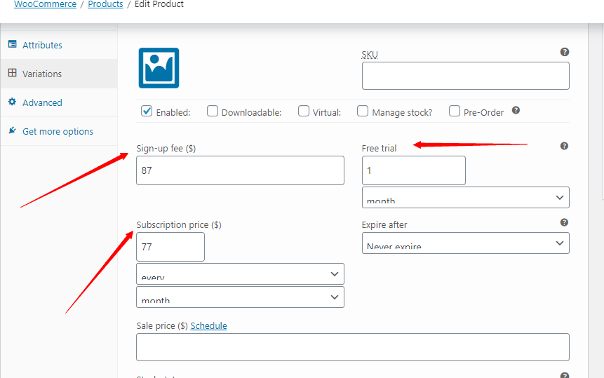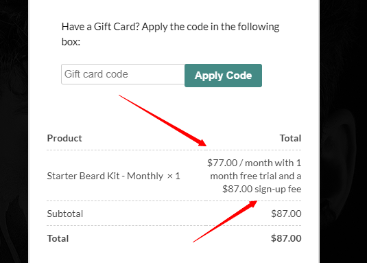 (For example: I want it to say "first month $87.00, $77 monthly recurring")