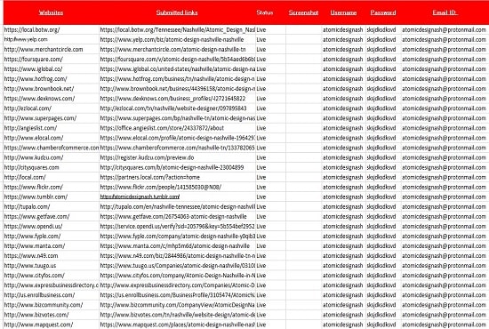 - Detailed Work report with all login details. Screenshot for all pending link