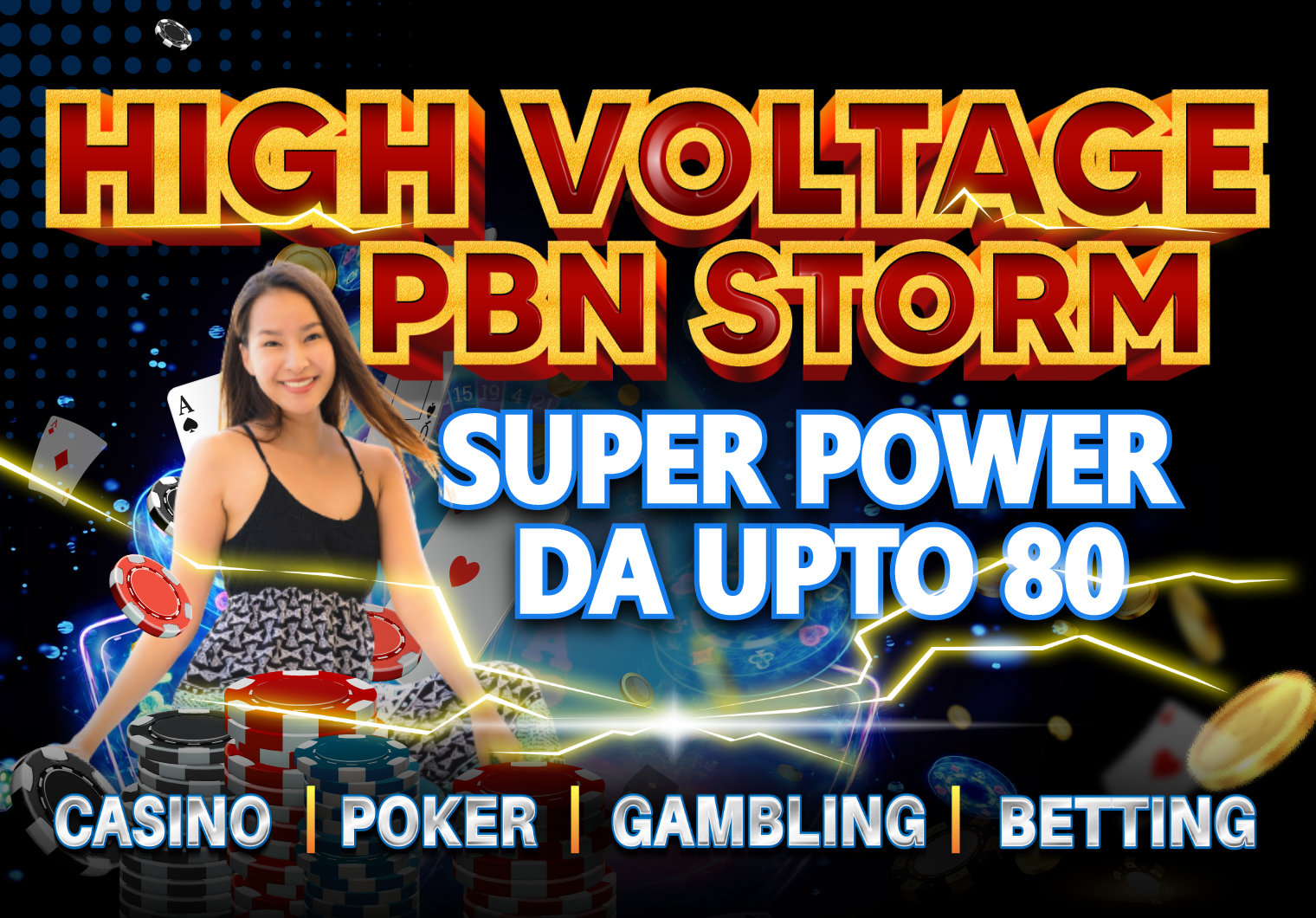 Dominate Your GAMBLING POKER, CASINO, AND BETTING Niche with our HIGH-VOLTAGE PBN STORMPosting Service. HIGH DOMAIN AUTHORITY UP TO 80.