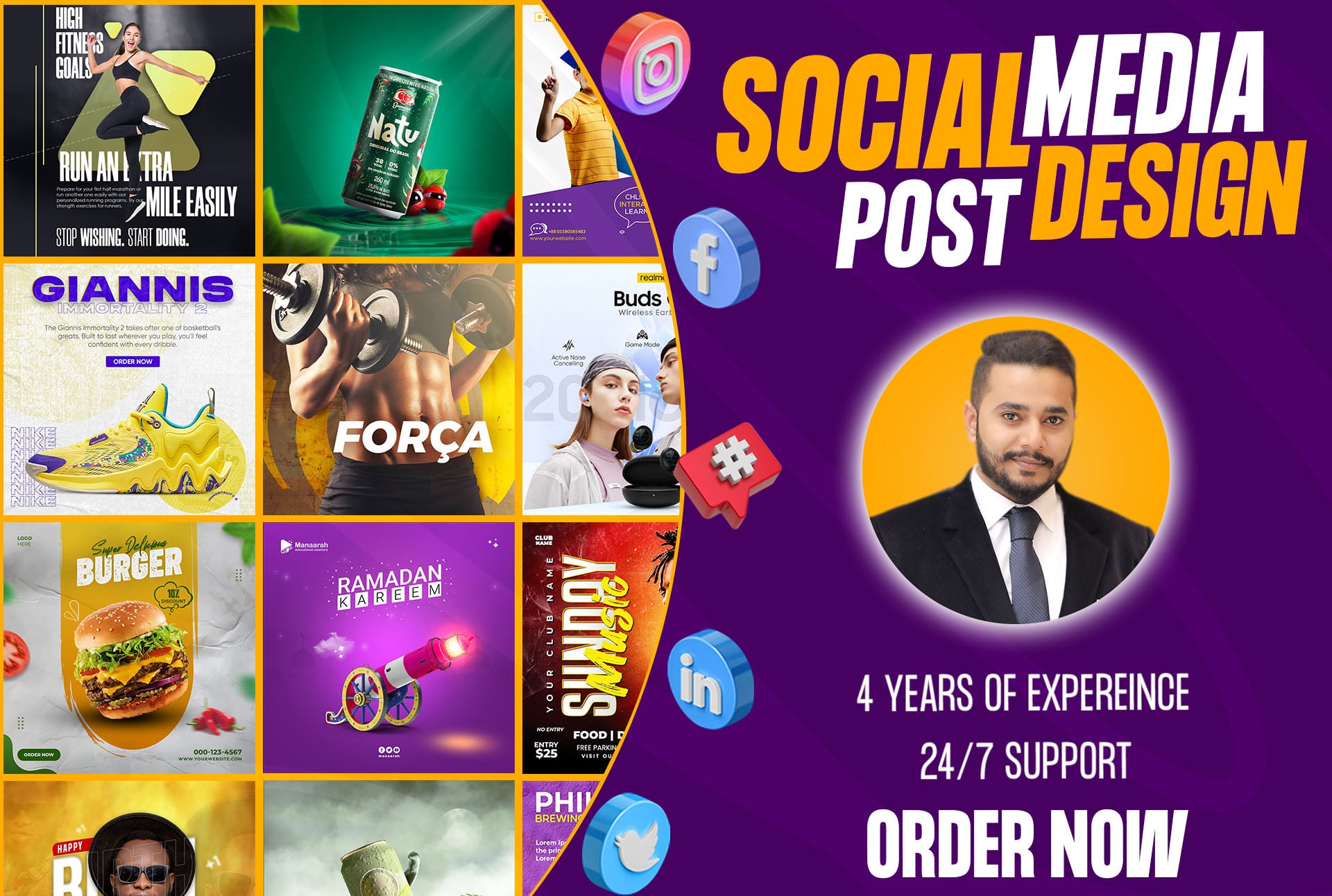 I am a professional graphic designer with a passion for creating stunning and engaging post designs including Facebook Post, Instagram Post, Banner ads Design, Cover, and Carousel post.