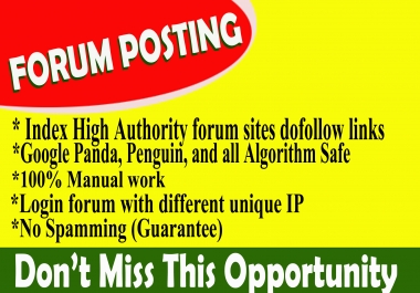 Hi, I will provide Dofollow Forum Backlinks and posts on High-Qualit...