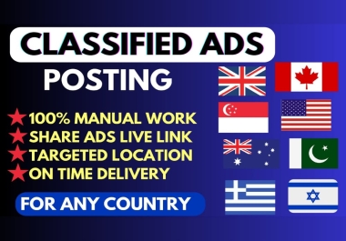 I will provide 66 Classified ads Posting in US, UK, and AUS for any ...