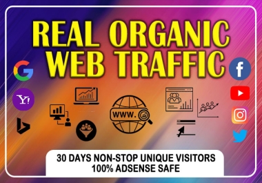 UNLIMITED HUMAN TRAFFIC BY Google Twitter Youtube and many more to web site for 30 days.