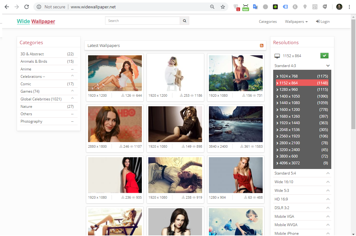 I have HD wallpapers website categories like celebrities, comic, games, nat...