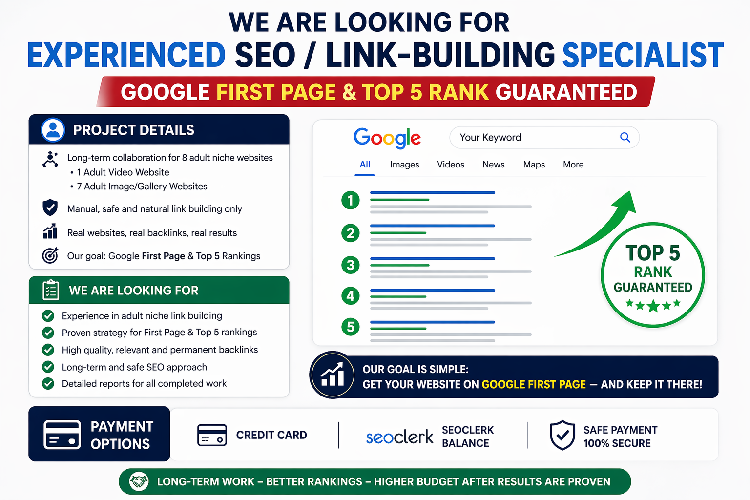 We are looking for an experienced SEO link-building specialist for a long-t...