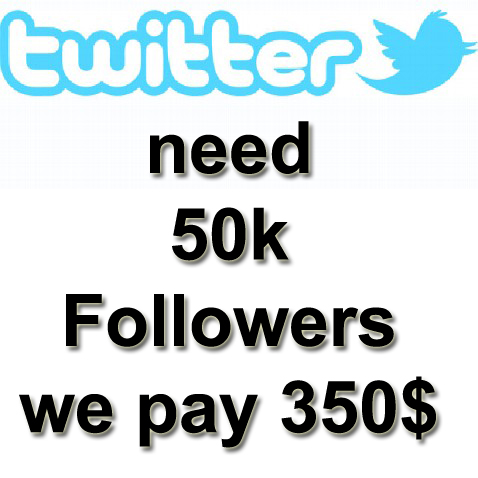 we need 50k or more twitter followers we pay 350 contact us on email michae...